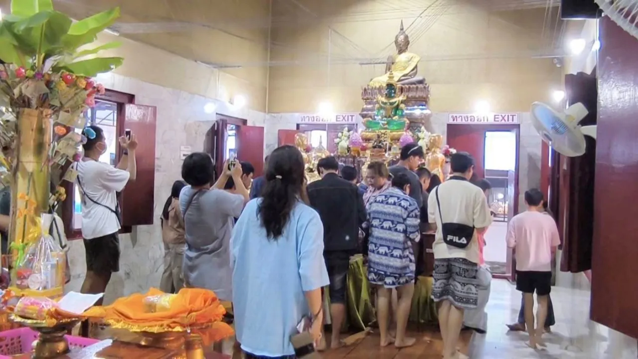 สายมูแน่นวัด แห่กราบไหว้ "หลวงพ่อปากแดง" ส่องเลขเด็ดอ่างน้ำมนต์ ลุ้น 1/8/67